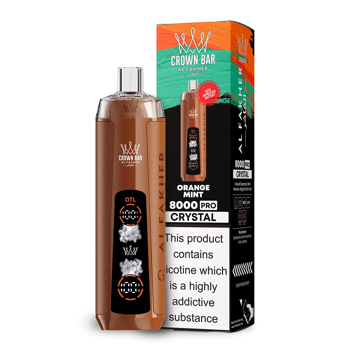 Discover the Al Fakher 8000 Puffs Disposable Vape (Crown Bar Crystal Edition) – a perfect fusion of shisha tradition and modern vaping technology. With 8000 puffs per device, a 1200mAh rechargeable battery, LED display, and a massive 45 flavor collection, this vape pen is a premium choice for Al Fakher vape lovers worldwide.