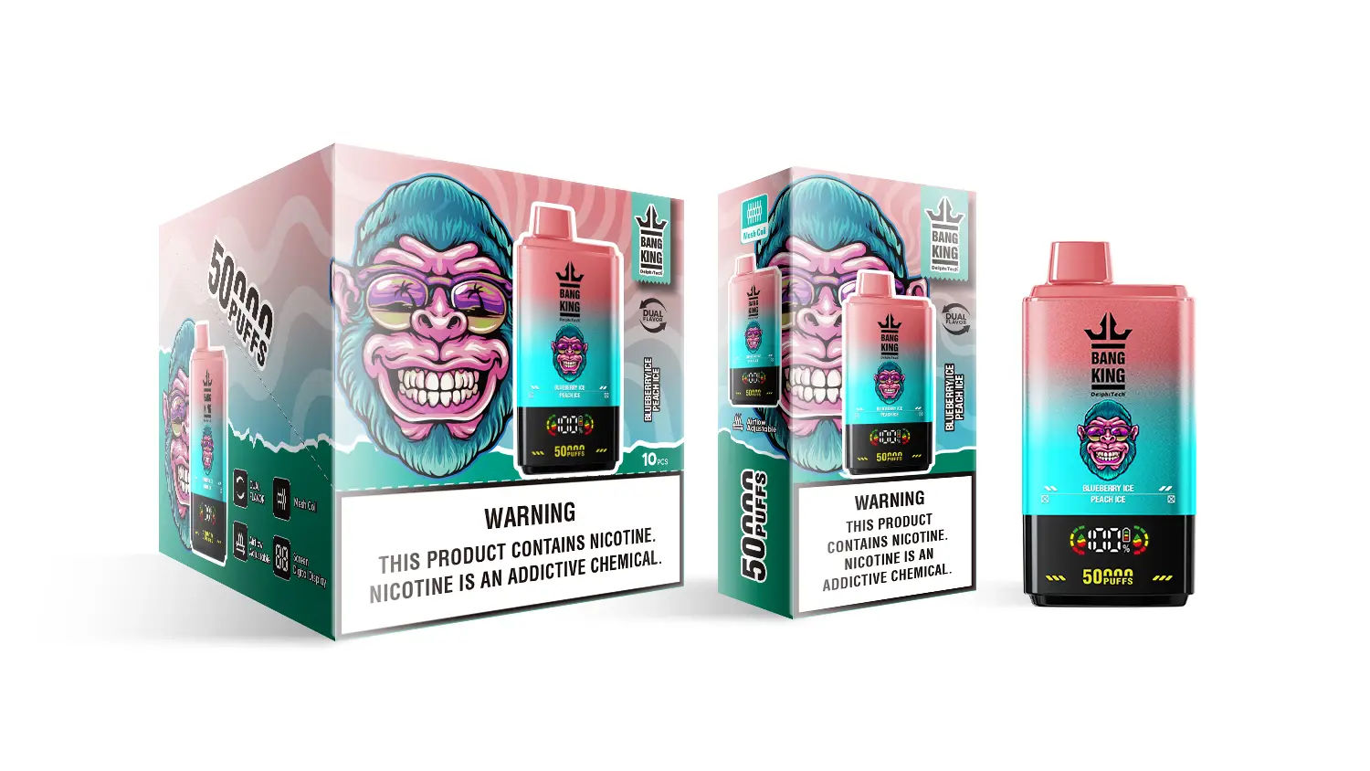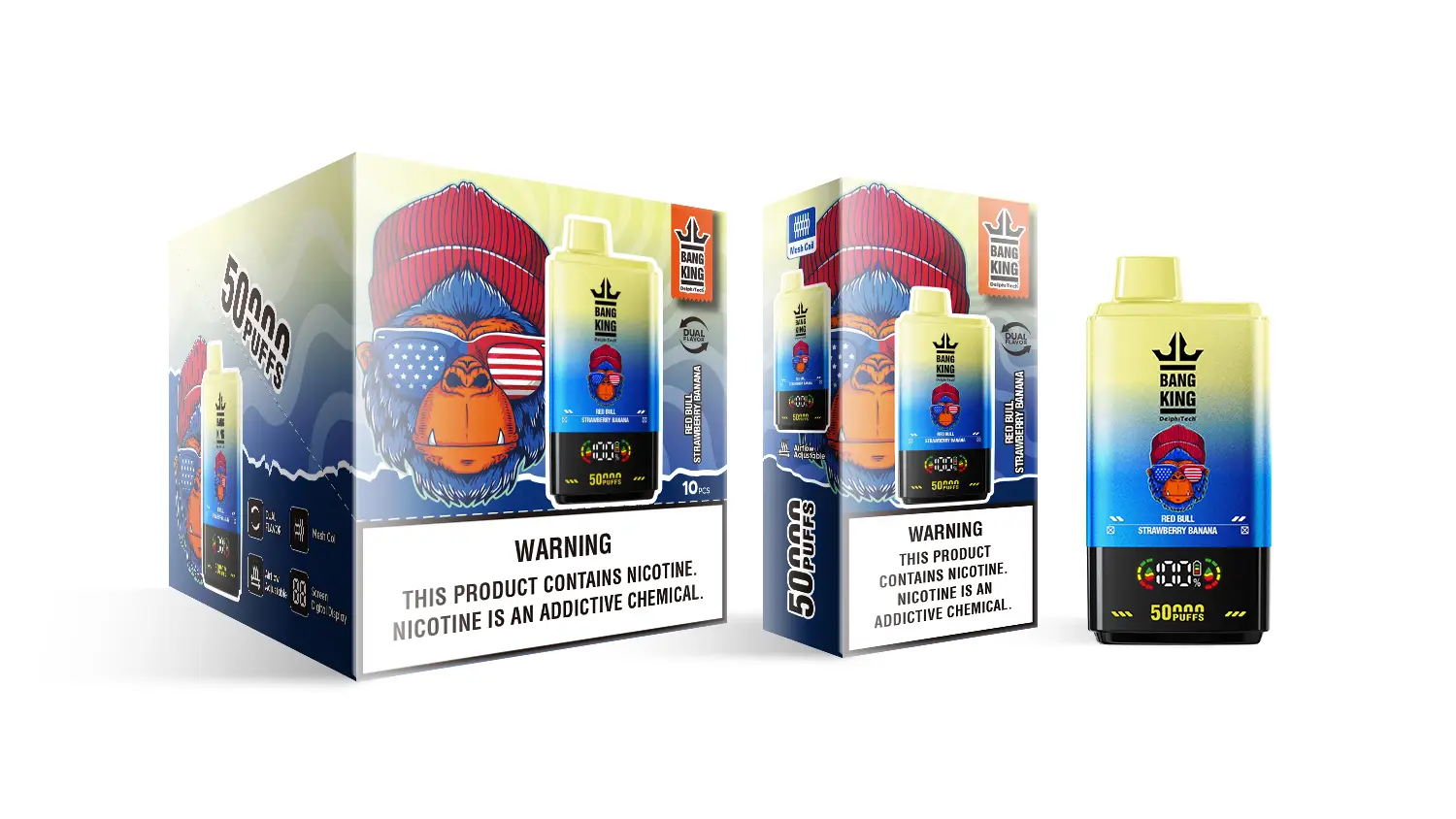 Experience the ultimate in big puff vaping with the Bang King 50K Disposable Vape. Built for long-lasting use, this advanced device combines dual flavor switching, 50,000 puff capacity, and a smart screen display into a sleek and portable vape box. Whether you’re a casual user or a wholesale distributor, the Bang King 50K delivers a professional-grade vaping experience.